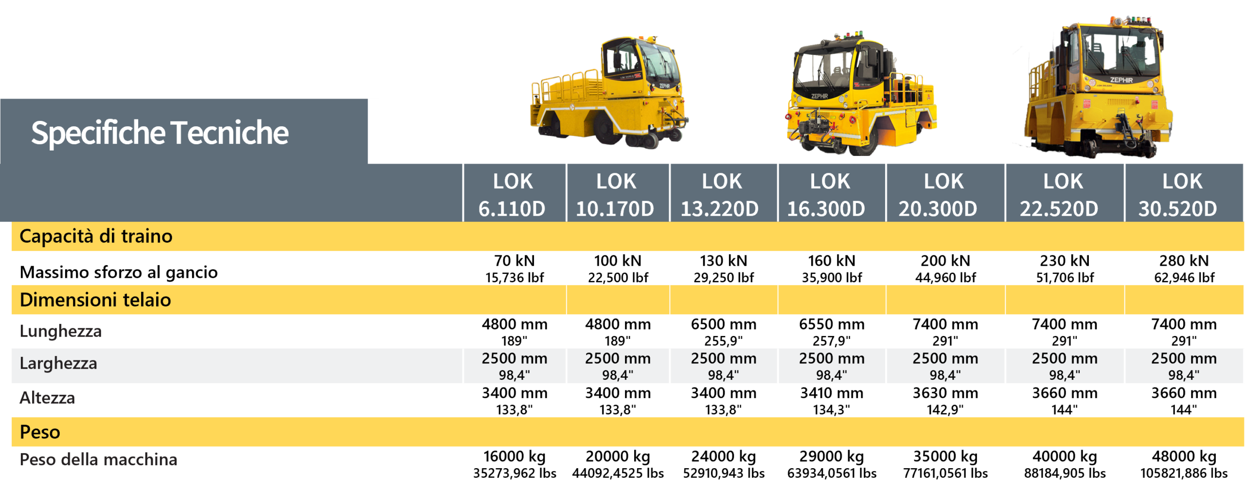 Zephir offre una gamma completa di locotrattori da manovra progettati per soddisfare le esigenze di qualsiasi cliente. Le nostre soluzioni garantiscono una maggiore efficienza operativa, costi di manutenzione inferiori e la durata di servizio più lunga del settore. Per affidabilità e innovazione, il LOK Diesel Zephir stabilisce lo standard negli strada-rotaia di manovra a diesel a basse emissioni.